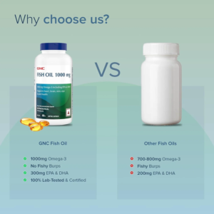 GNC Fish Body Oils is rich in DHA and EPA. Both DHA and EPA are types of Omega 3 fatty acid (an essential fatty acid which body doesnt produce). DHA good for brain & eye development of fetus and infants, hence ideal for pregnant & breast feeding mothers. EPA may prevent cardiovascular disease and help lower triglycerides. GNC Fish Body Oils helps reduce blood pressure. Omega 3, in Fish body oils also has blood thinning properties that discourages blood clotting. It increases the level of HDL (good cholestrol) and prevents bad cholestrol from building up. It also improves joint mobility.Taking vitamin E with fish oil may protect the oil from undergoing potentially damaging oxidation in the body.
