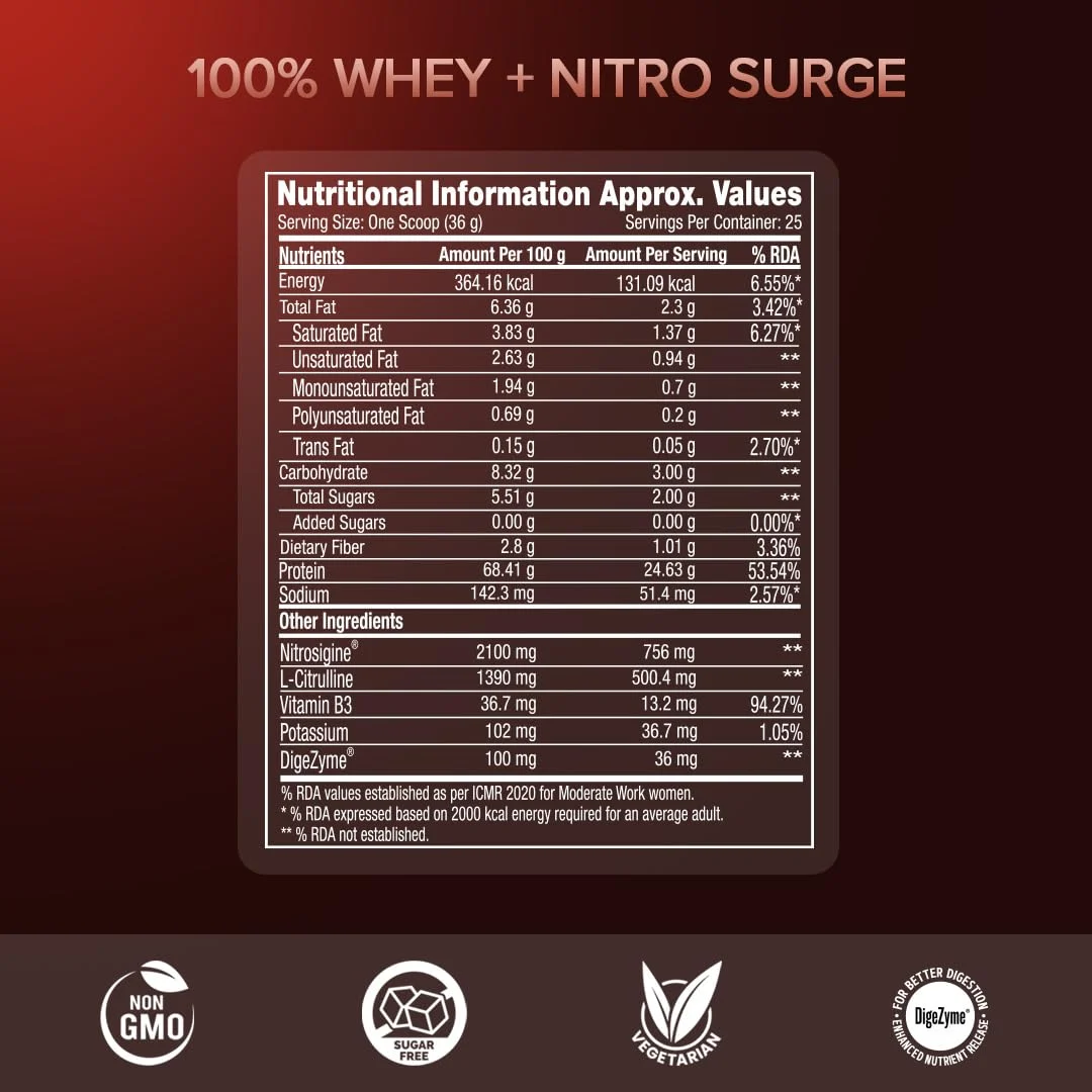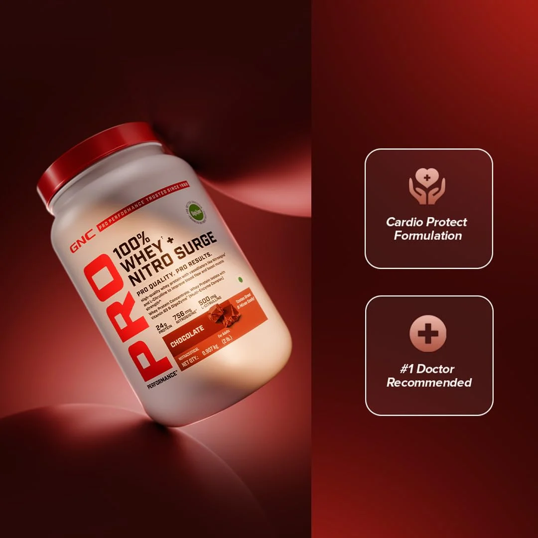 GNC Pro Performance 100% Whey Nitro Surge – 907 gm (1.99 Lb), Chocolate