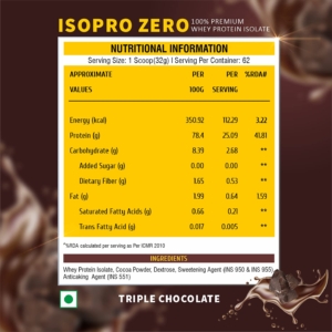 Healthfarm Isopro Zero 100% Whey Isolate Protein Powder – 2 Kg (4.4 Lb), Triple Chocolate