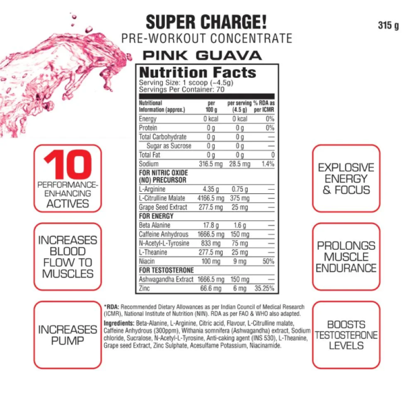 Labrada’s SUPER CHARGE provide all the key nutrients that the athletes want to have. In every serving, contains 750mg L-Citrulline Malate and 1.5g L-arginine. Contains L-Theanine & Caffeine may help increase energy and cognitive performance. It also provides Ashwagandha & zinc could help increase testosterone levels in stressed individuals, possibly by reducing the stress hormone.