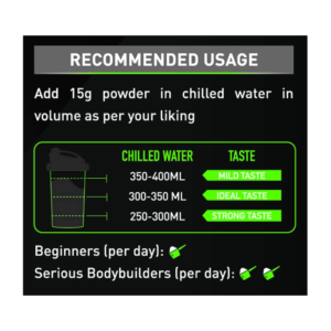 | Recommended Usage | add 01 level of scoop (15g), in chilled water in volume as per your liking |
