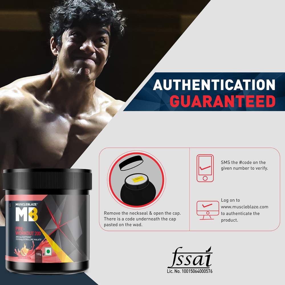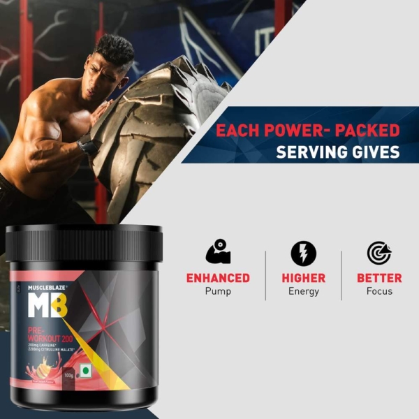 MuscleBlaze Pre-Workout 200 – 100 gm (0.22 Lb), Fruit Splash