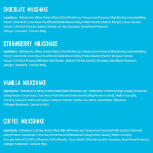 Chocolate Milkshake, Coffee Milkshake, Strawberry Milkshake, Vanilla Milkshake
