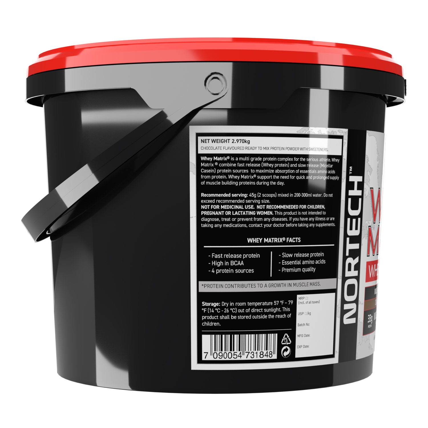 Nortech Nutrition Whey Matrix + Casein – 2.97 Kg (6.5 Lb), Classic Chocolate