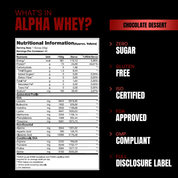 Whey Protein Whenever You Need: Alpha Whey comes with an extensive range of amino acid profiles like leucine, histidine, lysine, threonine, etc, that supply you with the necessary protein to keep you on track of your fitness goals.