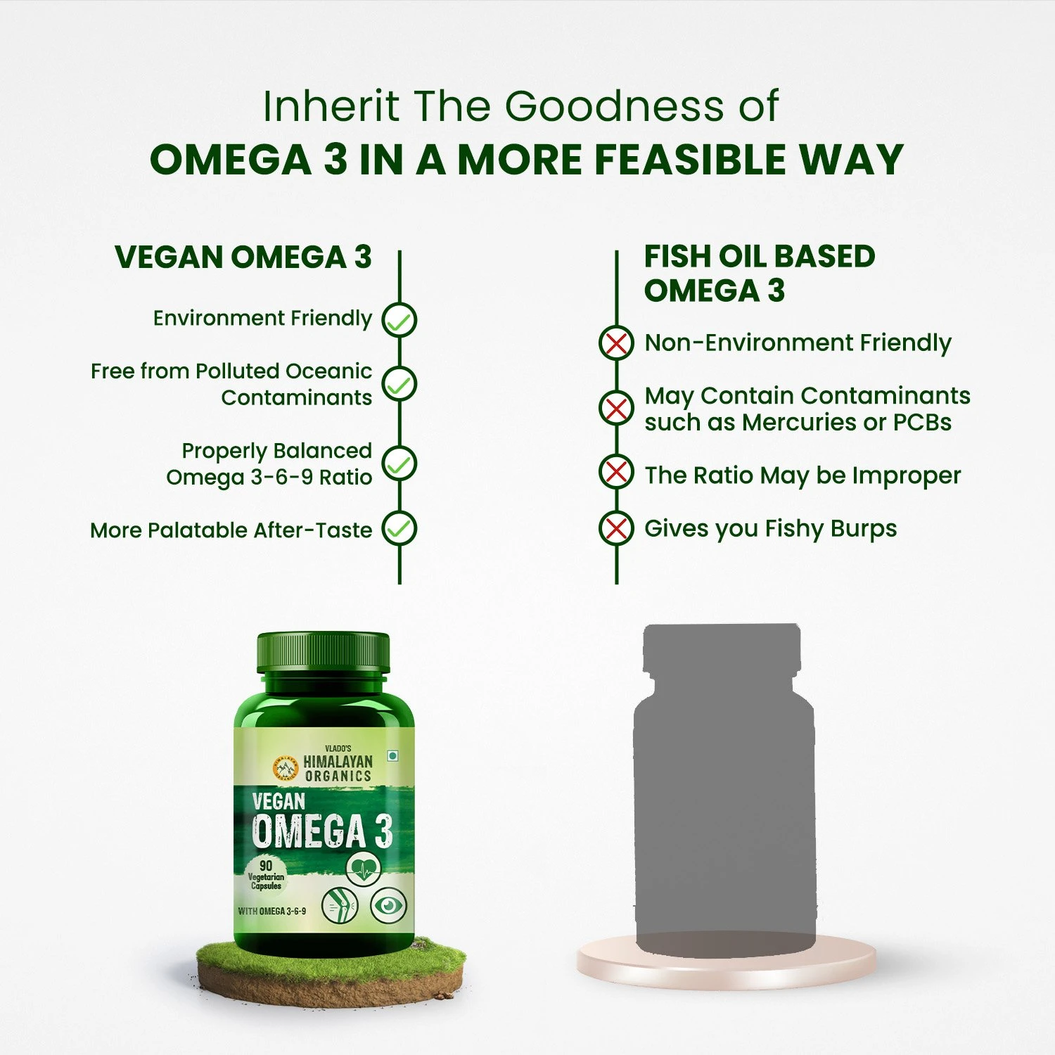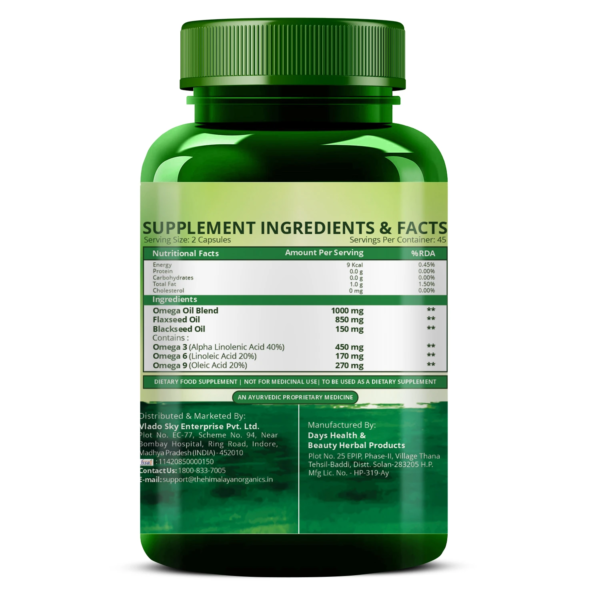 Are you a vegan & vegetarian finding some Omega-rich superfood that has almost the same nutritional value as fish oil? Your search ends here. These naturally sourced Omega capsules are loaded with essential Omegas for your bone, muscle & heart health. Omega-3 is very essential for our body. Himalayan organics Vegan Omega-3 is a rich source of Omega-3-6-9 that helps improve bone, joint and heart health effectively. Goodness of flaxseed oil, Omega 3, Omega 6 and Omega 9 supports cardiovascular health and makes you feel lighter and energetic throughout the day. It helps vegans & vegetarians obtain adequate levels of nutrition by taking this supplement on a regular basis. Omega-3 is good for eyes as well. Get ready to go on a delight with Himalayan Organics Omega 3 Capsules.